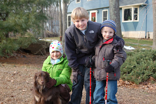When they got to the trail there was ICE everywhere. The kids had fun walking on the "clear" ice and looking to see what they could find frozen underneath.
